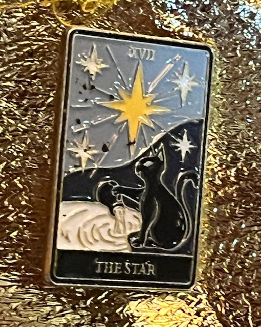 My new sweet ceramic black cat Star card pin – I love it!